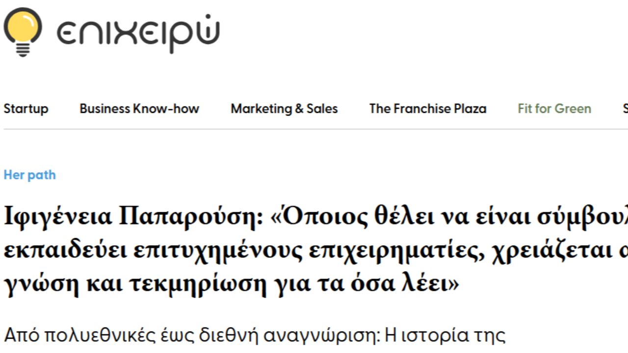 Άρθρο στο Epixeiro της Ιφιγένειας Παπαρούση